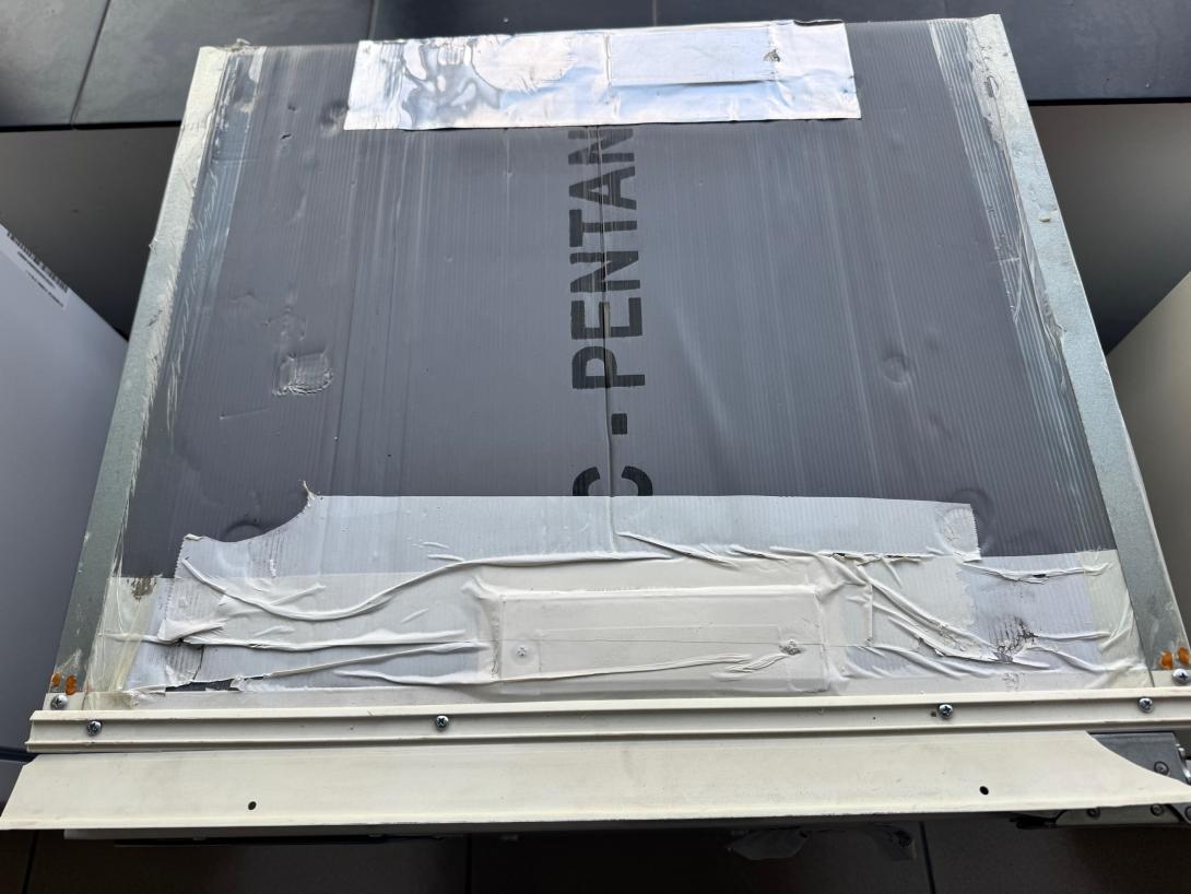 Poškodenie: Odlomená časť plastu z vrchnej časti, zatlačená zadná časť, chýba montážna sada /Viď. foto/