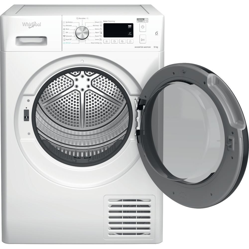 Sušička bielizne, Kapacita bubna: 9 Kg, Systém sušenia: kondenzácia + tepelné čerpadlo, Vstavaný displej: Áno, Hlučnosť (sušenie): 64 dB.