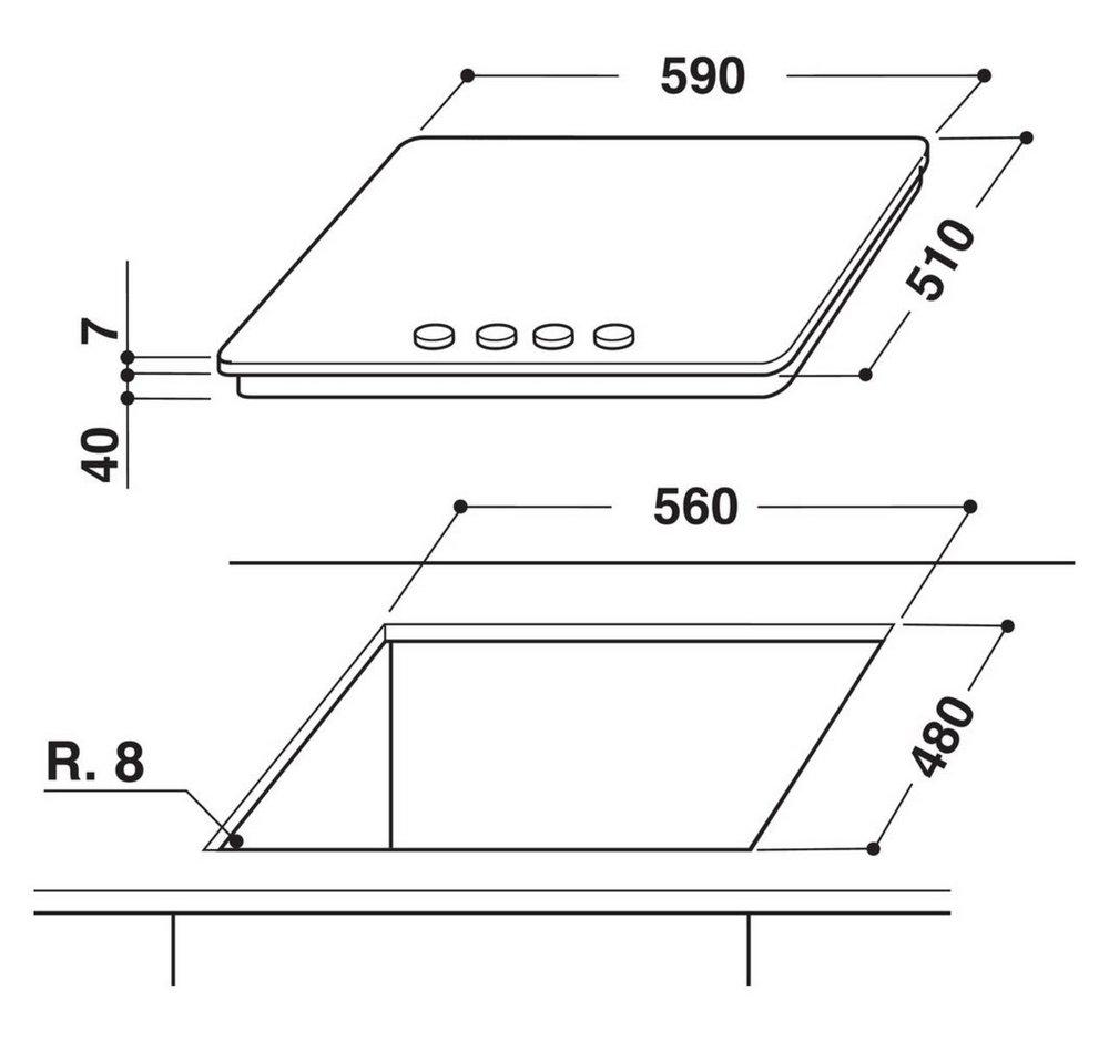 - Rozmery otvoru pre zabudovanie (vxšxh) 38x560x480 mm