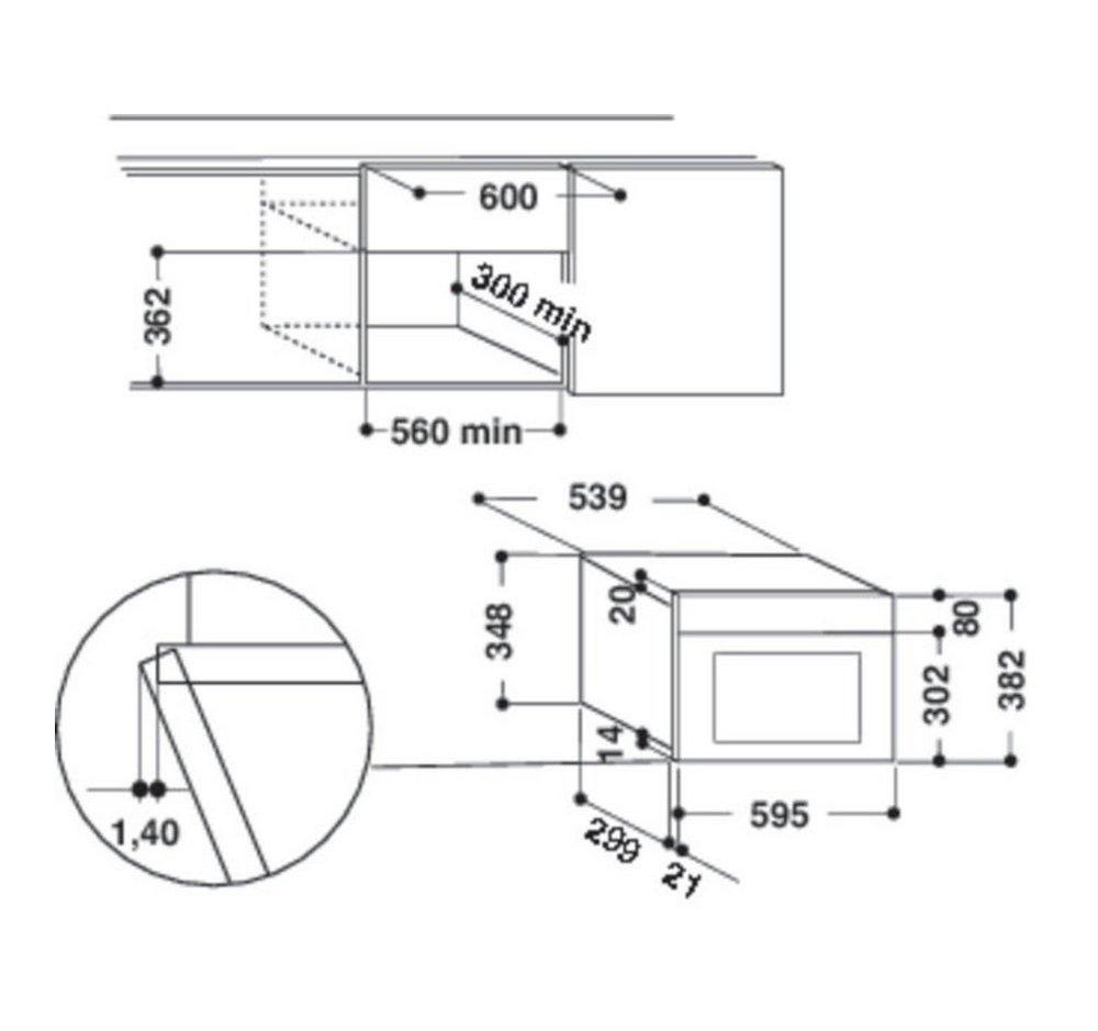 Vstavaná mikrovlnná rúra, Maximálny príkon 2000 W, Počet úrovní výkonu 4, Výkon mikrovlnného ohrevu 750 W, Výkon grilu 700 W, Napätie 230 V, Frekvencia 50 Hz, Prúdová poistka 16 A
