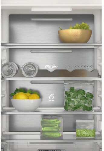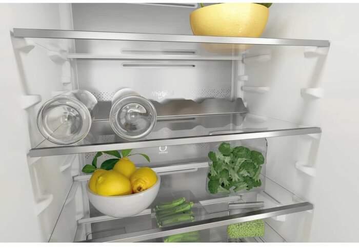 Chladnička značky Whirlpool s elegantnými sklenenými poličkami pre dokonalé spojenie krásy a funkčnosti. Užívajte si úplný zážitok z čistého a presného usporiadania potravín.