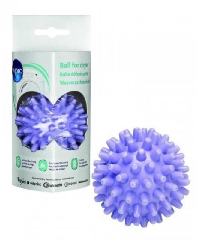 Zmäkčovacia loptička do sušičiek, Gumová loptička značky Wpro WBA 100 nadvihuje a oddeľuje bielizeň počas sušenia v bubnovej sušičke. Tým uľahčuje jej sušenie, zabraňuje pokrčeniu a zmäkčuje bielizeň aj bez použitia chemických látok, čím zjednodušuje tiež žehlenie.