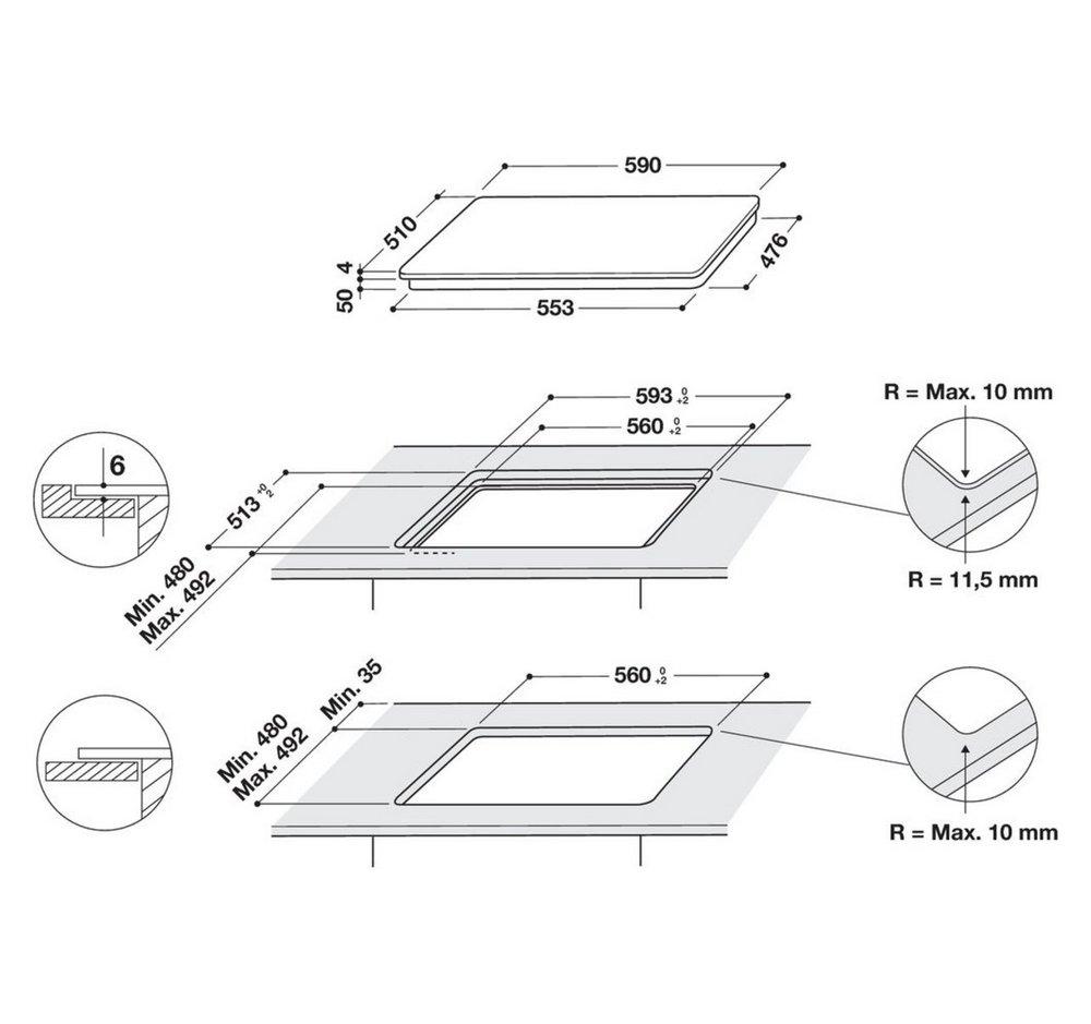 - Rozmery otvoru pre zabudovanie (vxšxh) 30-60x560-562x480 mm