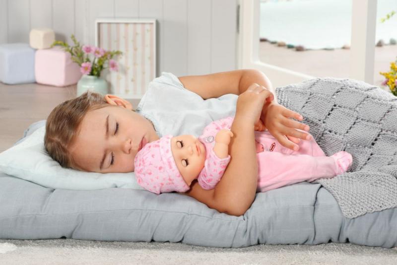 Keď položíš bábiku na chrbát, zavrie modré oči a miesto počítania ovečiek si v duchu odrieka abecedu.