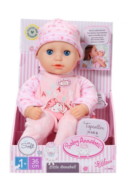 Baby Annabell Little Annabell je bábika veľkosti 36 cm so žmurkacími očami. Oblečená je do dupačiek a čiapočky. Súčasťou je fľaštička.