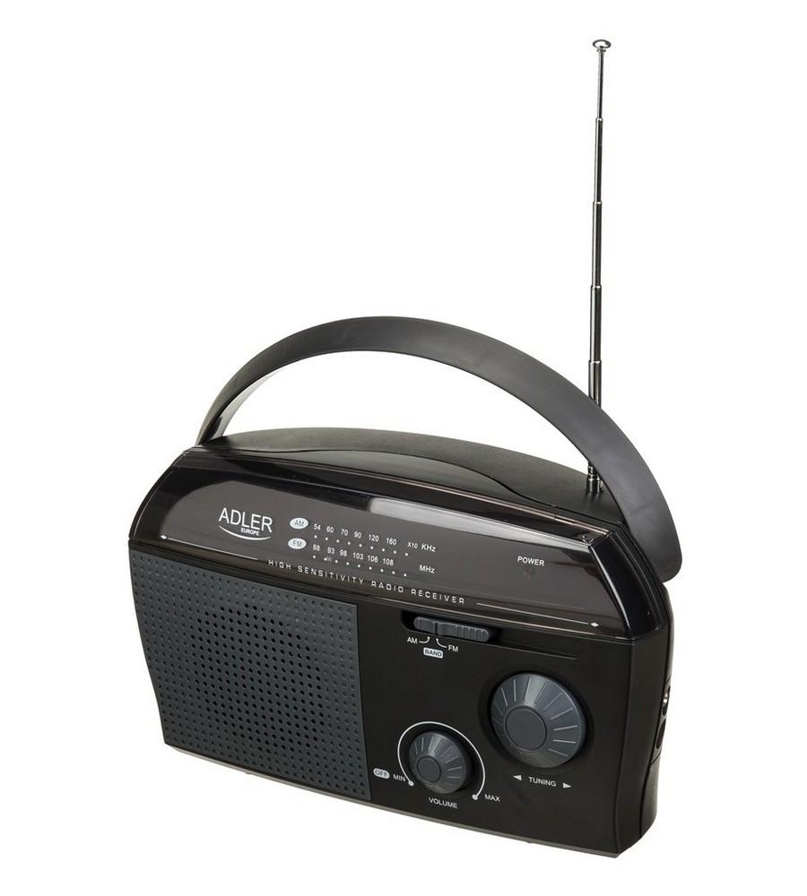 Malé prenosné rádio Adler AD1119 funguje skvele na pracovisku aj doma. Jeho otočná teleskopická anténa vám uľahčí vyhľadanie obľúbenej rozhlasovej stanice. Rádio sa dá napájať striedavým prúdom alebo 4 batériami R14. Vyznačuje sa vysokou spoľahlivosťou a odolnosťou voči vonkajším faktorom. Rádio pracuje na frekvenciách FM (88 - 108 MHz) a AM (530 - 1600 kHz). Ak nechcete rušiť ostatných počas počúvania hudby alebo rozhlasového programu, môžete tak urobiť pomocou 3,5 mm konektora pre slúchadlá.