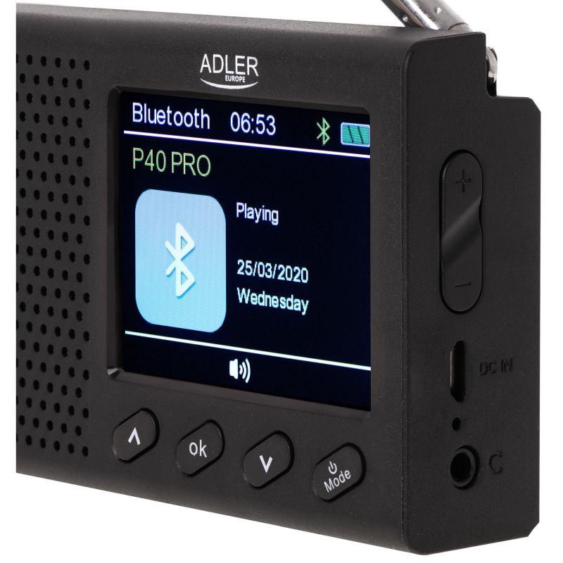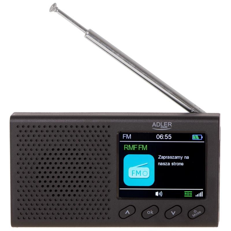 Prenosné rádio, 2,4 palcový farebný LCD displej, Výkon reproduktora: 3 W, FM: 87,5 - 108 MHz RDS, Vstavaná 1200 mAh batéria