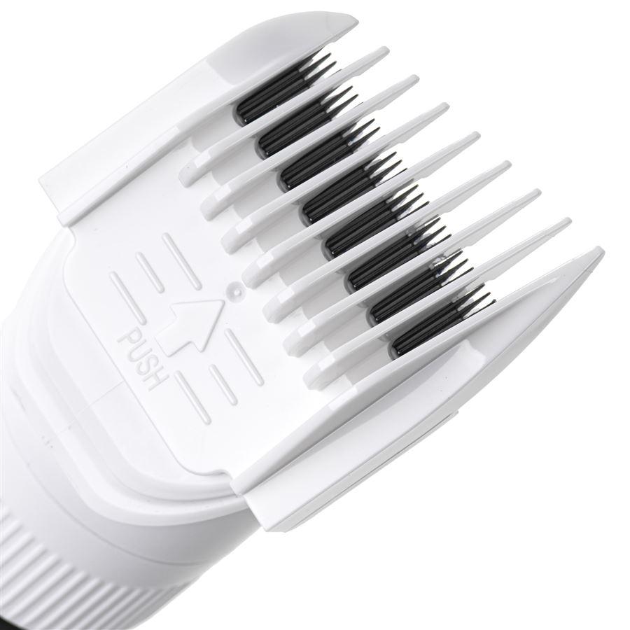 - 6 hrebeňových nástavcov: Ponúka širokú škálu dĺžok strihu (3, 6, 9, 12, 15, 18 mm), aby vyhovovali individuálnym preferenciám stylingu.
