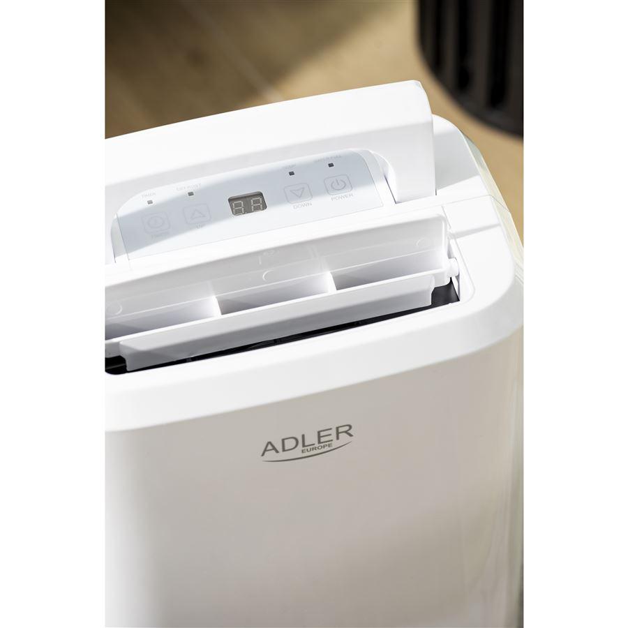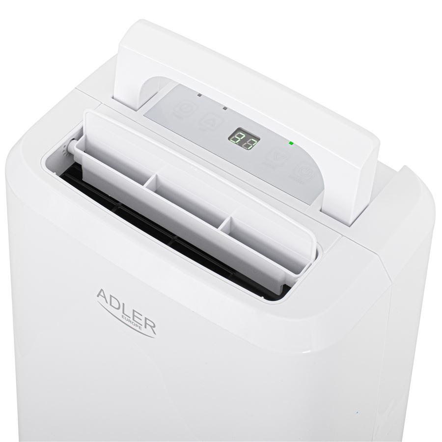 Adler AD7861 je kompresorový odvlhčovač vzduchu s kapacitou 10 litrov vody za deň s LCD displejom. Zariadenie má 2 režimy odvlhčovania: prerušovanú prevádzku na udržanie nastavenej úrovne vlhkosti v miestnosti a nepretržitú prevádzku. Odvlhčovač je vybavený presným senzorom, ktorý indikuje aktuálnu úroveň vlhkosti v miestnosti. Po odvlhčení miestnosti na predpokladanú úroveň vlhkosti, zariadenie automaticky vypne kompresor, čím zabezpečí cirkuláciu vzduchu cez pracujúci ventilátor. Zásobník na vodu má objem 2,0 litra a jeho naplnenie je signalizované svetelným a zvukovým signálom. Odvlhčovač má časovač od 1 do 24 hodín s funkciou odloženého štartu. Prietok vzduchu je 150 m3/hod.
