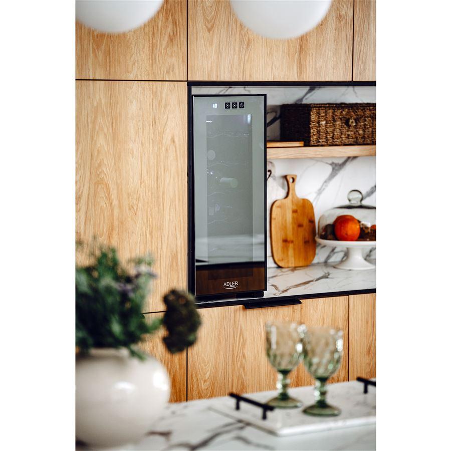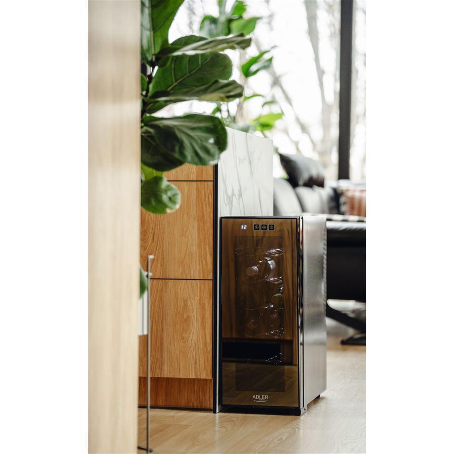 Vinotéka Adler AD8083 je zariadenie, ktoré ponúka vynikajúce riešenia chladenia nápojov v elegantnej podobe. S priestrannou 33-litrovou chladiacou komorou a profilovanými policami sa do nej zmestí až 12 fliaš, čo vám umožní uložiť rozmanitú škálu nápojov. Kapacita až 33 litrov vám umožní uložiť fľaše na pohodlne profilované police. Fľaše (dve na každej úrovni) do seba nenarazia a víno môže pokojne dozrieť a vychladnúť.