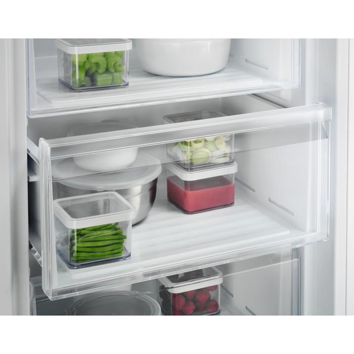 - Zásuvky mrazničky: 3 plnej šírky + 1 polovičnej hĺbky, priehľadné plastové