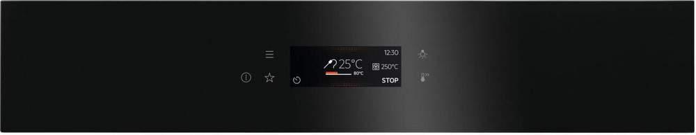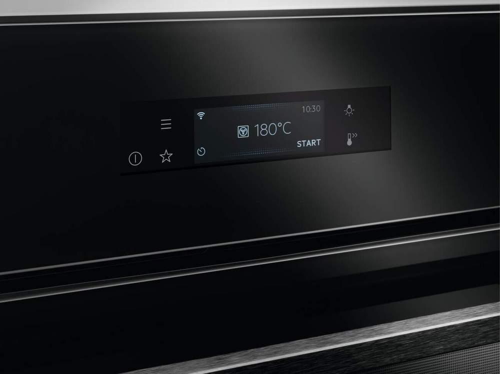 - Elektronické funkcie: 30 jazykov, akustický signál, automatické vypnutie, nastaviteľná hlasitosť zvukového upozornenia, kontrola výsledku (Finish Assist podľa zostávajúceho 10% trvania), Child lock (in off mode), 160 variety of pre-set cooking programmes 'Assist' (weight/food sensor), 3 obľúbené programy, 3 pyrolytické cykly, využitie zvyškového tepla, servisné informácie, vypnutie času dňa v stave vypnutia, odporučaná teplota, denný čas, minútka pre čistenie, Clock style in standby (2 versions), čas varenia, čas varenia s odhadovaným koncom, demo program s kódovaním, nastavenie jasu displeja, Display Full colour TFT touch 95x35mm, elektronická regulácia teploty, elektronický zámok dvier, rýchle predohriatie s výberom možností, senzor pokrmu, automatické vypnutie senzoru pokrmu, ukazovateľ teploty senzoru pokrmu, senzor pokrmu s odhadom času, udržiavanie teploty 65°C rozšírené o pečenie pri nízkej teplote a nastavenie senzoru pokrmu, tóny tlačidiel a tóny alarmu a chýb - aktivácia / deaktivácia (okrem ZAP/VYP), jazyky / textový displej, Main switch - general, denná pamäť 3 dni späť, minútka, zapnutie/vypnutie osvetlenia rúry (menu + samostatné tlačidlo), pyrolytické čistenie (3 cykly: rýchly, normálny, intenzívny), ukazovateľ skutočnej teploty (°C) , indikácia zvyškového tepla (°C)