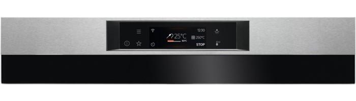 - Elektronické funkcie: 160 predpripravených varných programov Assist (senzor hmotnosti/pokrmu), 3 obľúbené programy, 3 pyrolytické cykly, 30 jazykov, akustický signál, ovládanie aplikácií, automatické vypnutie, nastaviteľná hlasitosť zvukového upozornenia, Check Result (Finish Assist by remaining 10% duration), Child lock (in off mode), minútka pre čistenie, Clock style in standby (2 versions), konektivita, čas varenia, tóny tlačidiel a tóny alarmu a chýb - aktivácia / deaktivácia (okrem ZAP/VYP), jazyky / textový displej, hlavný vypínač, denná pamäť 3 dni späť, minútka, zapnutie/vypnutie osvetlenia rúry (menu + samostatné tlačidlo), pyrolytické čistenie (3 cykly: rýchly, normálny, intenzívny), ukazovateľ skutočnej teploty (°C) , indikácia zvyškového tepla (°C), využitie zvyškového tepla, servisné informácie, vypnutie času dňa v stave vypnutia, odporučaná teplota, denný čas, Display Full colour TFT touch 95x35mm, elektronická regulácia teploty, elektronický zámok dvier, rýchle predohriatie s výberom možností, senzor pokrmu, automatické vypnutie senzoru pokrmu, čas varenia s odhadovaným koncom, demo program s kódovaním, nastavenie jasu displeja, ukazovateľ teploty senzoru pokrmu, senzor pokrmu s odhadom času, udržiavanie teploty 65°C rozšírené o pečenie pri nízkej teplote a nastavenie senzoru pokrmu