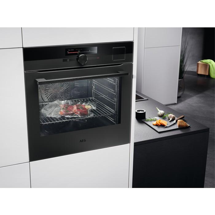 • Funkcie rúry: Gratinované jedlá, Dolný ohrev, Pečenie chleba, Tradičné pečenie, Rozmrazovanie, Kysnutie cesta, Sušenie, Mrazené pokrmy, Parné pečenie, Gril, Vysoká vlhkosť, Nízka vlhkosť, Stredná vlhkosť, Udržiavanie teploty, Vlhký horúci vzduch, Pečenie pizze, Ohrev tanierov, Zaváranie, Pomalé pečenie, Varenie Sous vide, Parná regenerácia, Steamify, Teplovzdušné pečenie, Turbo gril, Príprava jogurtu