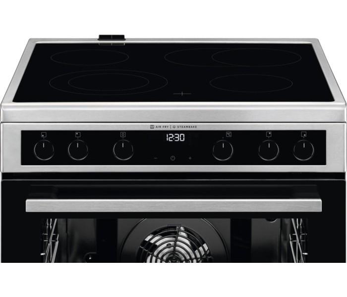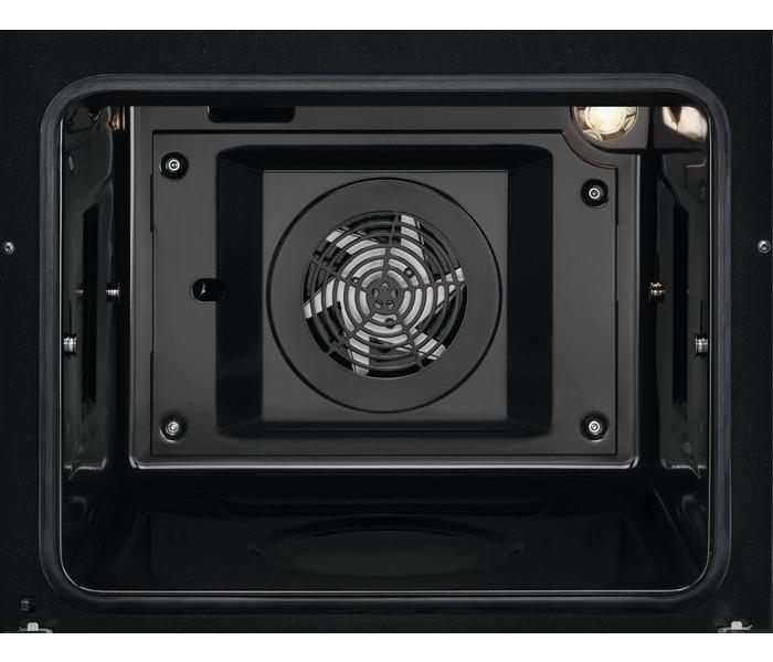 - Funkcie vrchnej rúry: ventilátor + vrchný ohrev (bez svetla), gril + vrchný ohrev, gril + vrchný ohrev + ventilátor, kruhové teleso + spodný ohrev + ventilátor, kruhové teleso + ventilátor, kruhové teleso + ventilátor + SteamBake, vrchný a spodný ohrev