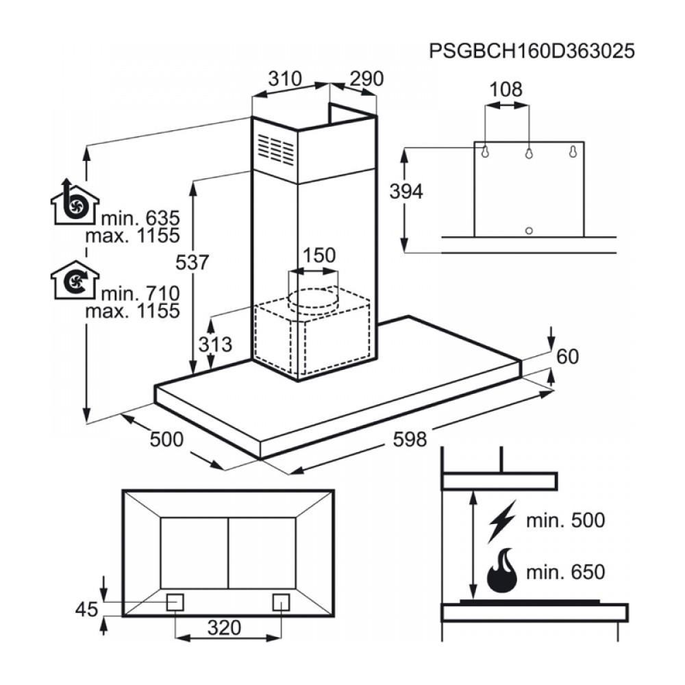- Typ inštalácie: Komínový, šírka 60 cm