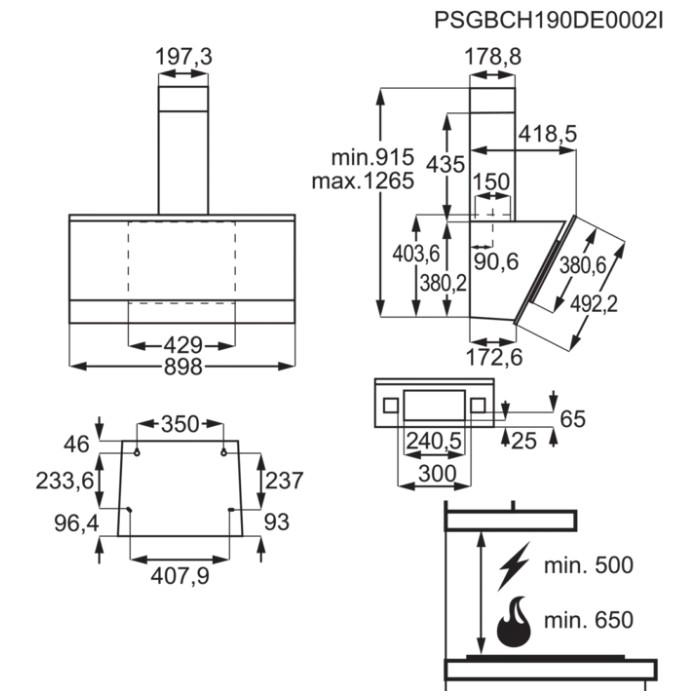 - Typ inštalácie: Komínový, šírka 90 cm