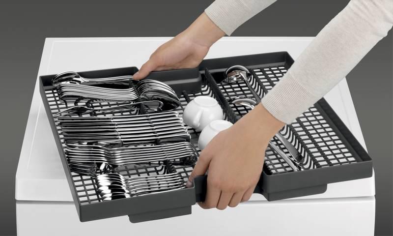 - Vlastnosti horného koša: Plastová rukoväť 6 jemných hrotov na poháre na víno 2 sklápacie drôtené držiaky na okuliare 2 sklopné konzoly 2 mäkké prsty Plastová rukoväť AEG