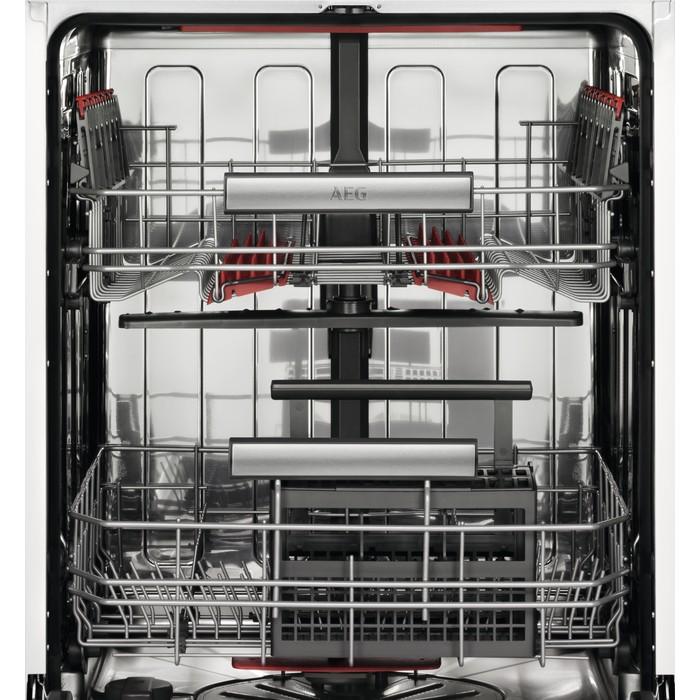 - Horný košík s: 12 úchytov na poháre na víno, 2 sklopné držiaky, 2 sklopné drôtené úchyty na poháre, 4 mäkké gumové špičky , sklopné držiaky na poháre, antikorová rukoväť AEG, postranné držiaky košíka