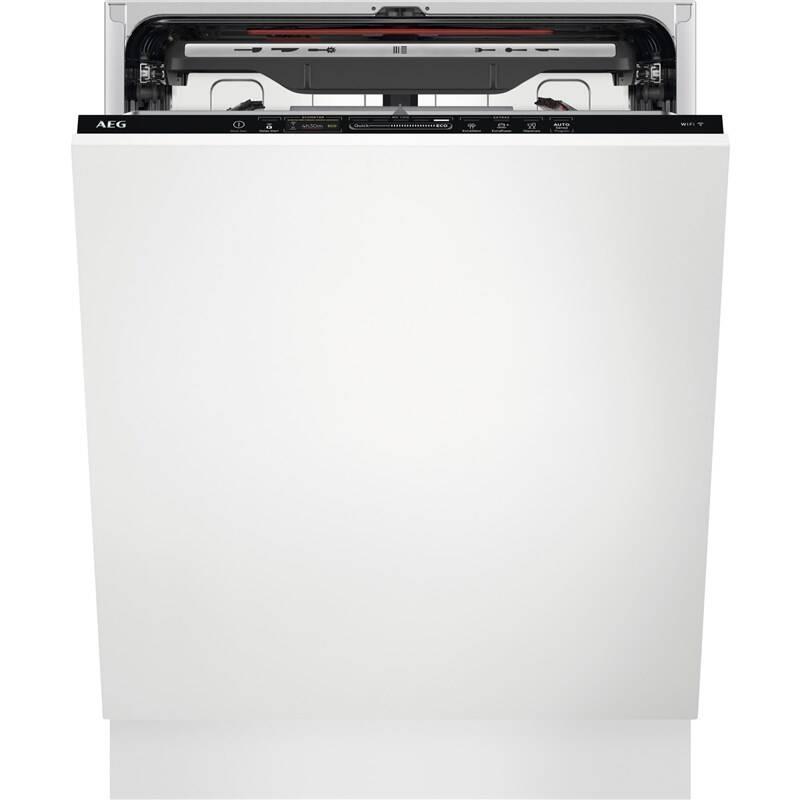 • Vlastnosti horného koša: 2 sklopné držiaky, 2 sklopné drôtené úchyty na poháre, 2 mäkké gumové špičky , 6 úchytov na poháre na víno, sklopné držiaky na poháre, antikorová rukoväť AEG, postranné držiaky košíka