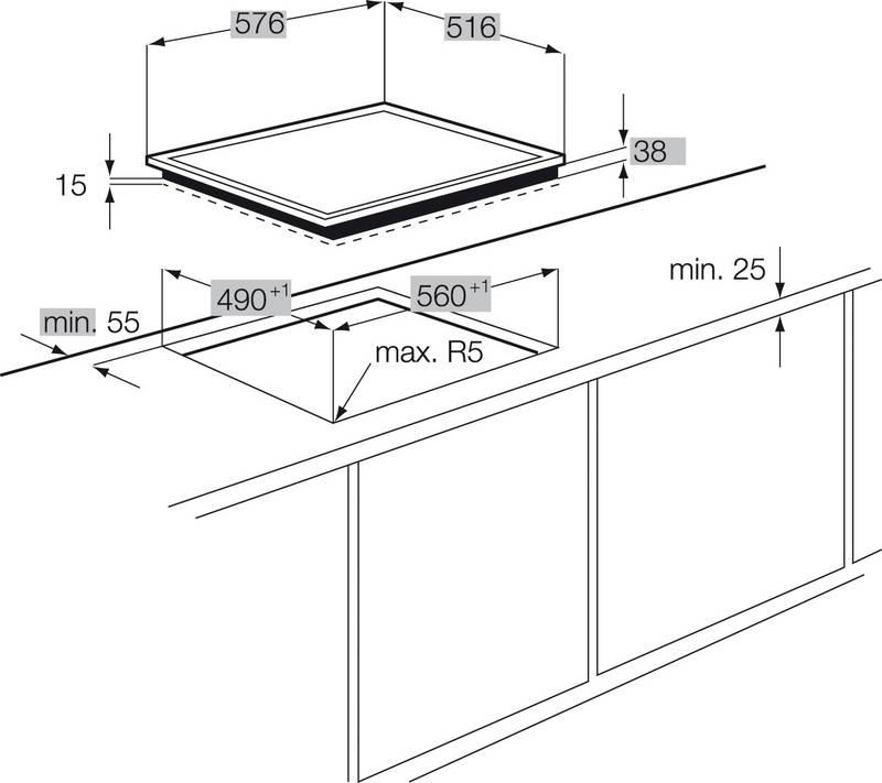 Varná doska, Vpravo vpredu: 1200/145 mm, Všeobecná veľkosť (cm) 60, Šírka (mm) 576, Hĺbka (mm) 516