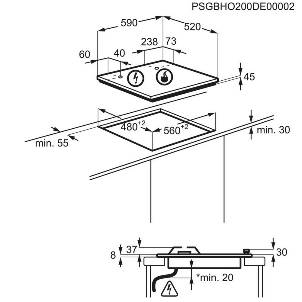 Plynová varná doska, Rozmery pre zabudovanie VxŠxH (mm): 40x560x480, Materiál ovl. panelu: sklenený, Typ ohrevu: Plyn na skle