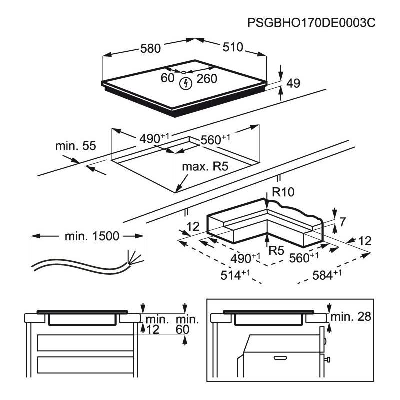- Rozmery pre zabudovanie VxŠxH (mm): 0x560x490
