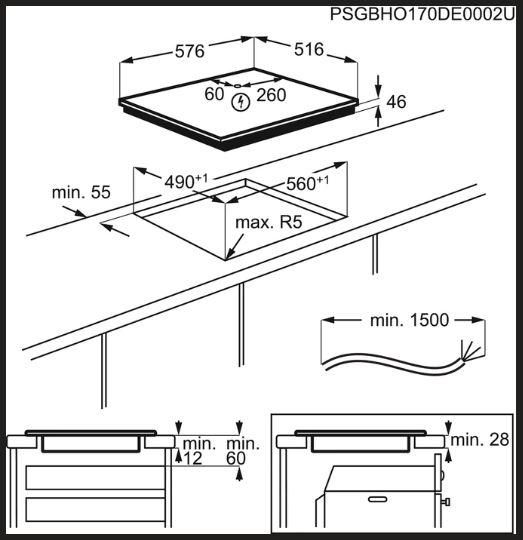 - Rozmery pre zabudovanie VxŠxH (mm): 46x560x490