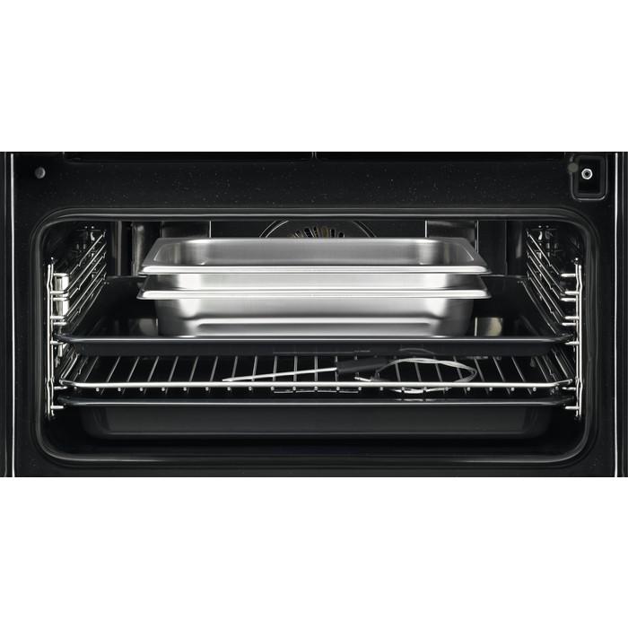 - Vybavenie rúry - plechy: 1 smaltovaný plech na pečenie, 1 plech na zachytávanie mastnoty šedý smalt, 1 sada dierovanej + nedierovanej panvice