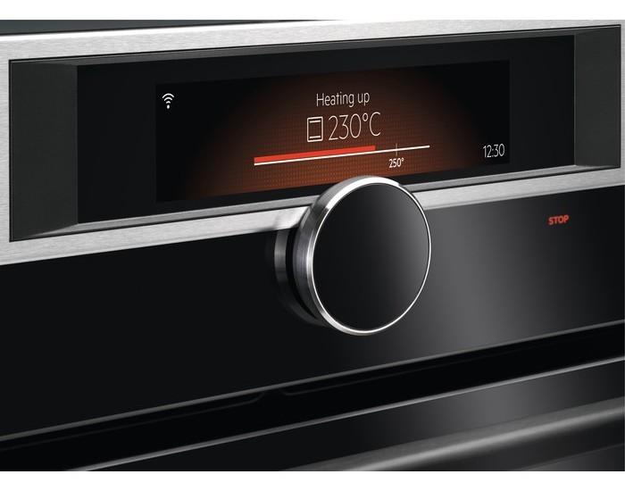 - Elektronické funkcie: 255 predpripravených varných programov Assist (senzor hmotnosti/pokrmu/para/SousVide), 3 obľúbené programy, 32 jazykov, akustický signál, ovládanie aplikácií, automatické vypnutie, nastaviteľná hlasitosť zvukového upozornenia, Check Result (Finish Assist by remaining 10% duration), Child lock (in off mode), minútka pre čistenie, senzor pokrmu, automatické vypnutie senzoru pokrmu, ukazovateľ teploty senzoru pokrmu, senzor pokrmu s odhadom času, indikácia zvyškového tepla (°C), využitie zvyškového tepla, Info button & short function description, udržiavanie teploty 65°C rozšírené o pečenie pri nízkej teplote a nastavenie senzoru pokrmu, minútka, zapnutie/vypnutie osvetlenia rúry (menu + samostatné tlačidlo), hlavný vypínač, denná pamäť 3 dni späť, Over the air update (OTA), zapnutie pri otvorení dverí, zapnutie stlačením tlačidla, ukazovateľ skutočnej teploty (°C) , tóny tlačidiel a tóny alarmu a chýb - aktivácia / deaktivácia (okrem ZAP/VYP), jazyky / textový displej, Display Full colour TFT rotary 175x35mm, Drying function after cavity steaming, elektronická regulácia teploty, rýchle predohriatie s výberom možností, Clock style in standby (2 versions), konektivita, čas varenia, čas varenia s odhadovaným koncom, vypúšťanie pary, demo program s kódovaním, odstraňovanie vodného kameňa, nastavenie jasu displeja, preplachovanie, servisné informácie, nastavenie spustenia, čistenie parou (2 cykly: Steam Cleaning, Steam Cleaning Plus), vypnutie času dňa v stave vypnutia, odporučaná teplota, denný čas, nastavenie tvrdosti vody