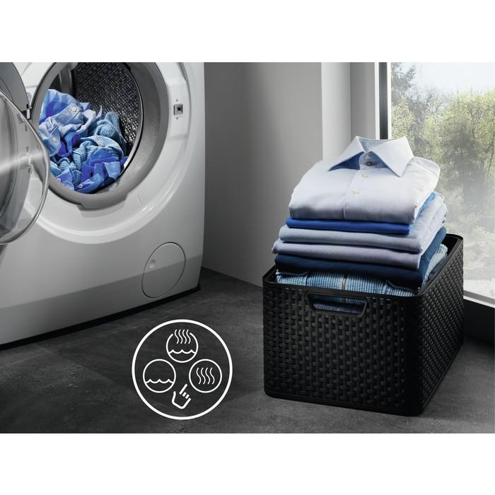 Naša technológia DualSense prispôsobuje teplotu a pohyb buna rozličným typom tkanín a upraví program podľa aktuálnej dávky bielizne. Nižšie teploty a regulovaný pohyb bubna umožňujú jemné pranie a sušenie všetkých druhov oblečenia od jemnej bielizne až po outdoorové odevy.