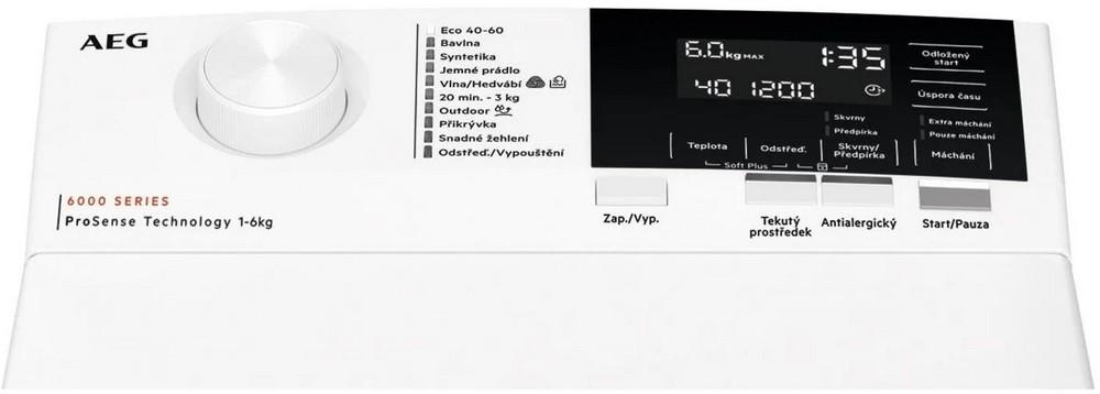 Zvrchom plnená práčka, Množstvo bielizne: 6 kg, Maximálne otáčky: 1200 ot./min., Veľký LCD displej, Úroveň emisií hluku šíreného vzduchom (dB (A) re 1pW): 78