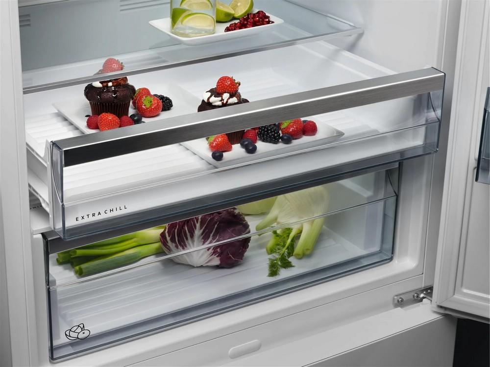 - Zásuvky mrazničky: 2 plnej šírky + 1 polovičnej hĺbky, priehľadné plastové