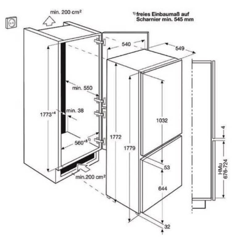 Vstavaná chladnička, Vstavaná výška (mm): 1780, Energetická trieda: A +, Celkový čistý objem (l): 253