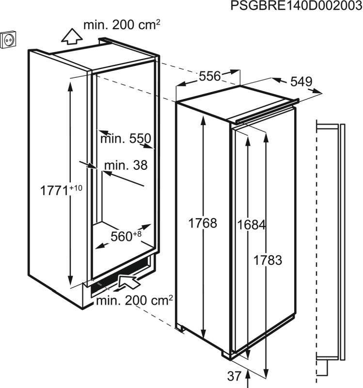 Vstavaná chladnička, Rozmery pre zabudovanie VxŠxH (mm): 1780x560x550, Odmrazovanie chladničky: automatické