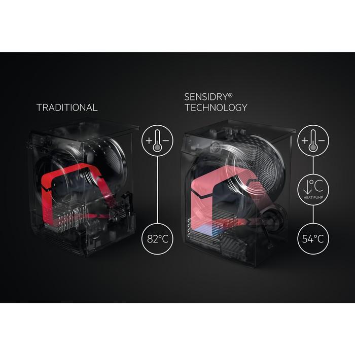 Sušičky AEG s technológiou SensiDry® sušia pri nízkych teplotách a využívajú precízne senzory na monitorovanie cyklu sušenia. Odevy tak nebudú nikdy vystavené zbytočnému teplu a dlhšie si zachovajú štruktúru, ktorú mali ako úplne nové. Nízka teplota navyše pomáha šetriť energiu.