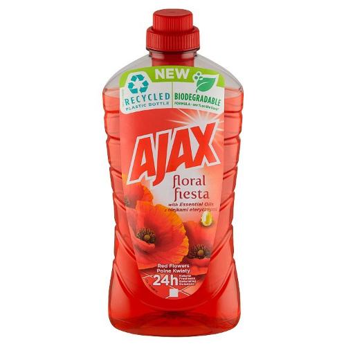 Univerzálny čistič, Univerzálny čistič na podlahy Ajax Boost Floral Fiesta na všetky druhy povrchov so sviežou vôňou červených kvetov.