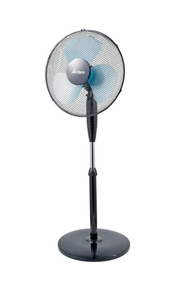 Stojanový ventilátor Ardes EASY 40PB. Priemer vrtule 40 cm. Polopriehľadné vrtule. Ochranná mriežka. Príkon 50 W. 3 rýchlosti. Šírka základne 60 cm. Automatická oscilácia. Celočierne prevedenie
