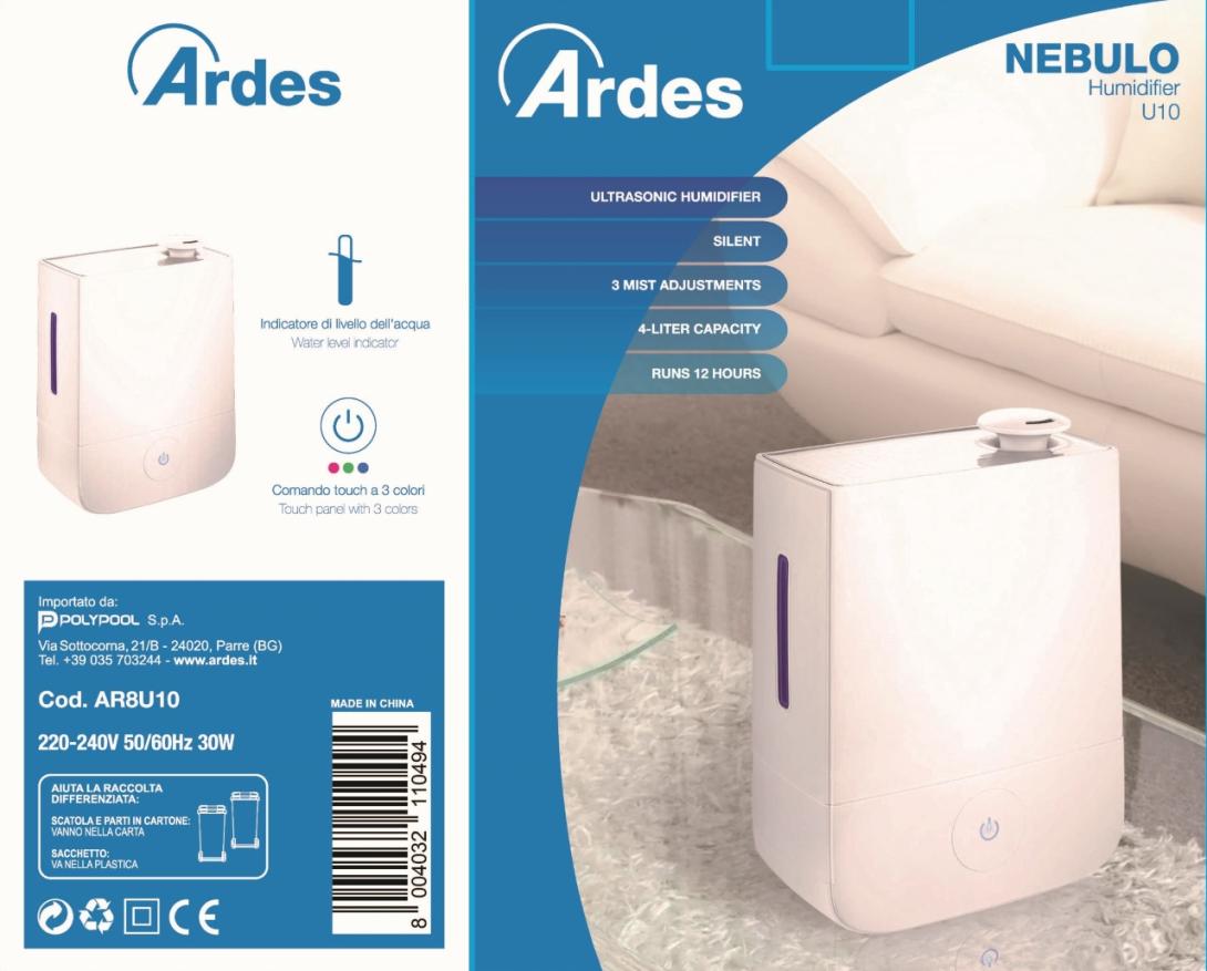 - Zvlhčovač vzduchu Ardes U10 s efektívnou ultrazvukovou metódou pri spotrebe len 30 W