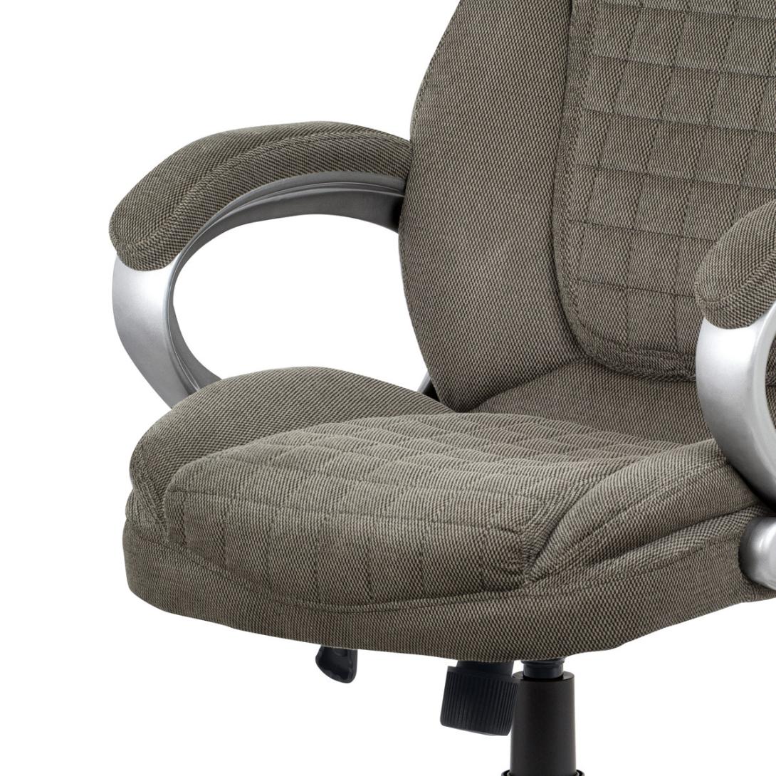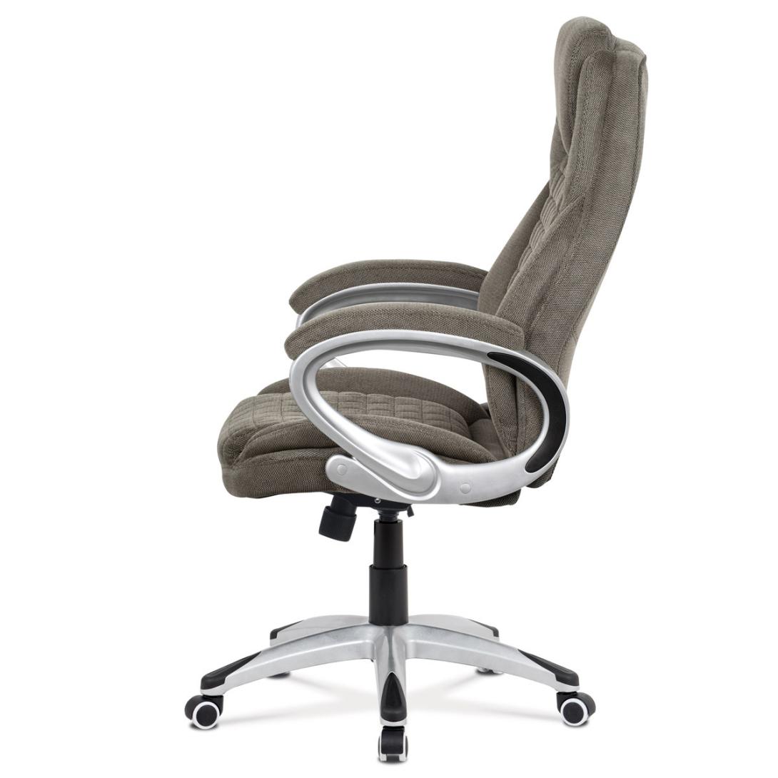 Moderná kancelárska stolička potiahnutá pololesklou šedou látkou vzor pepito. Vďaka ultra pohodlnému sedáku a operadlu s výnimočným polstrovaním, ktoré sú štýlovo tvarované, s elegantným prešitím a so super mäkkým podhlavníkom sa budete cítiť ako v business class najlepšej leteckej spoločnosti. Ruky si môžete pohodlne oprieť o pevné plastové podrúčky šedej farby s čiernymi plastovými doplnkami a polstrovaním potiahnutým extra jemnou látkou. Stolička má tiež aj ľahko umývateľný, tvrdený, plastový kríž striebornej farby s čiernymi protišmykovými prvkami a plastovými kolieskami vhodnými na tvrdé typy podláh (dlažba, parkety, plávajúce podlahy a pod.). Je výškovo nastaviteľná, s hojdacím mechanizmom a prednou skrutkou upravujúcou tuhosť pohupu a jej nosnosť je až 120 kg.