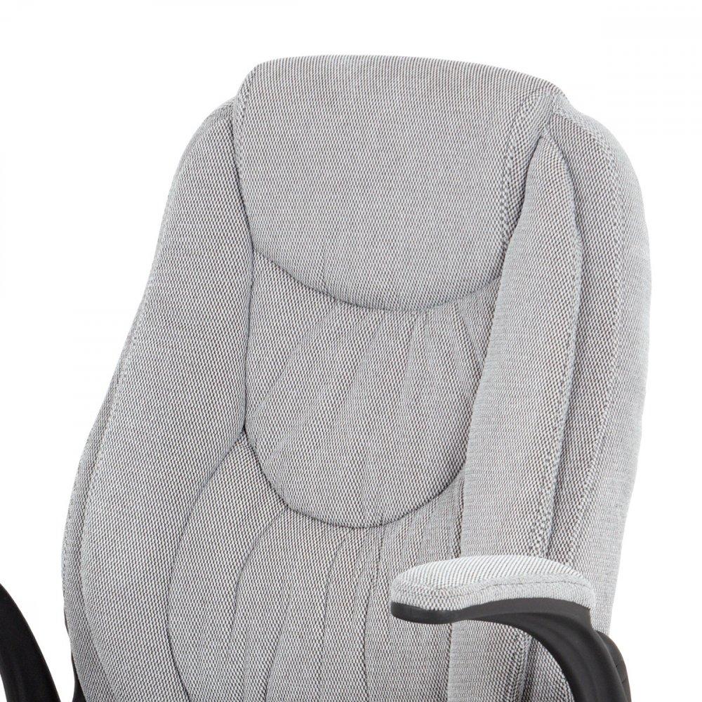 Moderná kancelárska stolička potiahnutá pololesklou šedostriebornou látkou vzor pepito. Vďaka ultra pohodlnému sedáku a operadlu s výnimočným polstrovaním, ktoré sú štýlovo tvarované, s elegantným prešitím a so super mäkkým podhlavníkom sa budete cítiť ako v business class najlepšej leteckej spoločnosti. Ruky si môžete pohodlne oprieť o odklápacie plastové podrúčky striebornej farby s polstrovaním potiahnutým extra jemnou látkou. Stolička má tiež aj ľahko umývateľný, tvrdený, plastový kríž striebornej farby s čiernymi protišmykovými prvkami a plastovými kolieskami vhodnými na tvrdé typy podláh (dlažba, parkety, plávajúce podlahy a pod.). Stolička je výškovo nastaviteľná, so synchrónnym mechanizmom a prednou skrutkou upravujúcou tuhosť pohupu a jej nosnosť je až 120 kg.