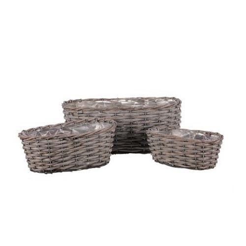 Košík prútený - oválny kvetináč, šedý, cena za sadu 3 ks