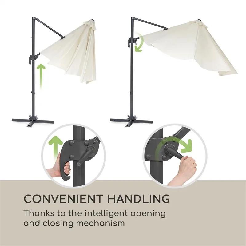 Dôkladná ochrana pred slnkom! Flexibilne použiteľný slnečník Belo Horizonte od spoločnosti blumfeldt zaujme otočnou funkciou o 360°, veľkou strechou proti slnku s UV ochranou 30+ a robustnou hliníkovou tyčou.