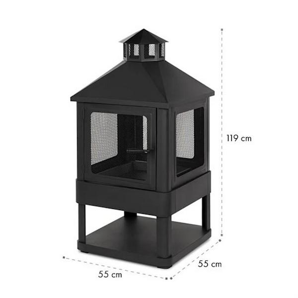 S odnímateľnou nádobou na oheň s rozmerom 35 x 35 cm ponúka záhradný krb Blumfeldt Macondo dostatok priestoru pre veľký oheň z polien alebo dreveného uhlia. Dekoratívna konštrukcia s výškou 119 cm v podobe starého lampáša dodáva blikajúcemu ohňu ešte lepší dojem vďaka princípu FireView: uzatvorené ohnisko má okolo seba štyri veľké oceľové mriežkové siete, vďaka ktorým máte voľný pohľad na plamene a zároveň umožňujú prístup k ich teplu všetkým hosťom. Uzatvárateľné dvere na prednej strane umožňujú kedykoľvek doplniť palivo alebo jednoducho zapáliť oheň pomocou priloženého kutáča. Aby bolo vždy po ruke dosť paliva, zariadenie Macondo má v 20 cm vysokej základni skladovací priestor, kde čakajú suché polená bezpečne na použitie. Spálený materiál padá do odnímateľnej nádoby na popol a dá sa teda jednoducho zlikvidovať.