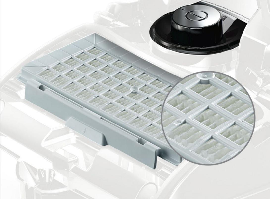 - Hygienický filter "pureAir" pre čistejší vzduch vyfukovaný z vysávača. Vďaka tomu dosahuje vysávač pri emisiách prachu triedu A.