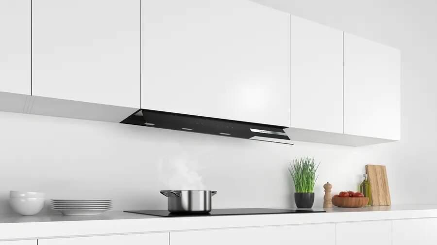 Vstavaný digestor, Maximálny výkon odsávania 460 m3, Celková spotreba 64.7 kWh, Maximálna hlučnosť 63 dB