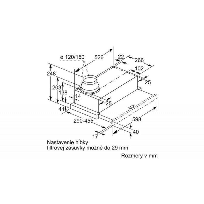 - rozmery pre zabudovanie (V x Š x H): 162 x 526 x 290 mm