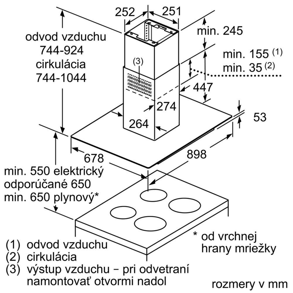 - rozmery pri recirkulácii (VxŠxH): 744-1044 x 898 x 600 mm