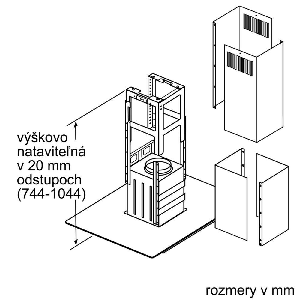 - rozmery spotrebiče pre cirkuláciu s CleanAir Plus montážnou sadou (V x Š x H): 812-1044 x 898 x 600 mm