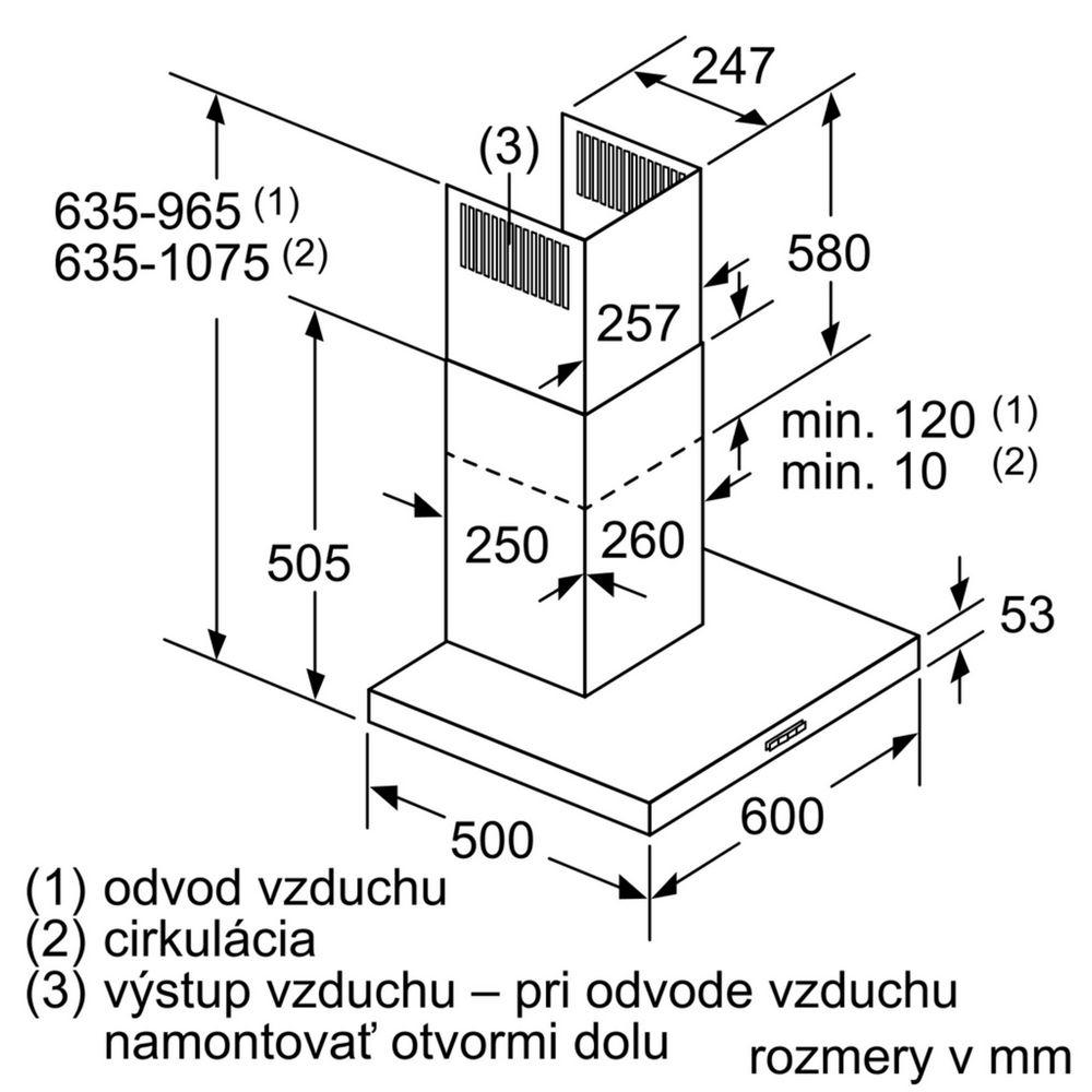 - rozmery pri recirkulácii (VxŠxH): 635-1075 x 600 x 500 mm